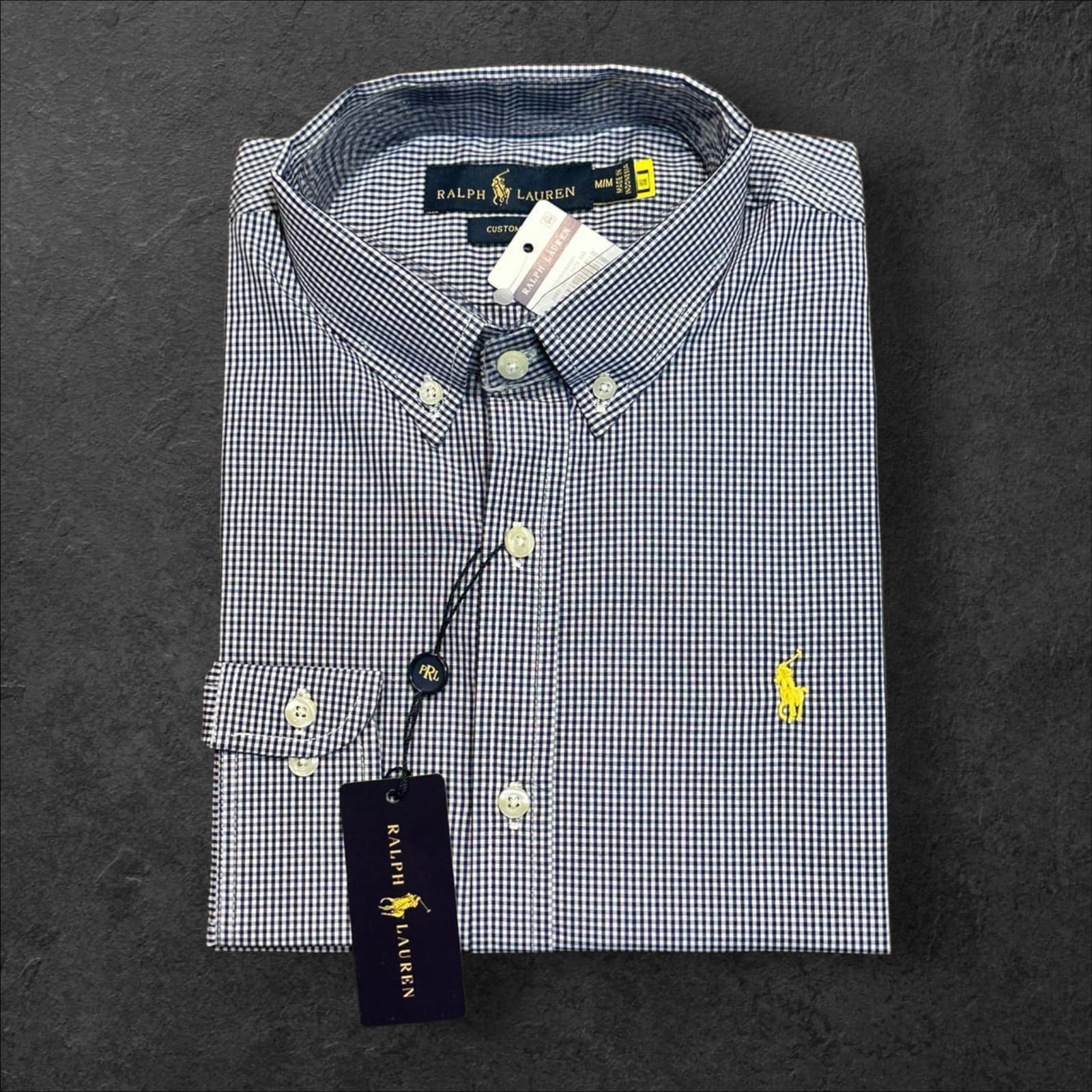 Camisa Xadrez Ralph Lauren Masculina Custom Fit Azul e Branco