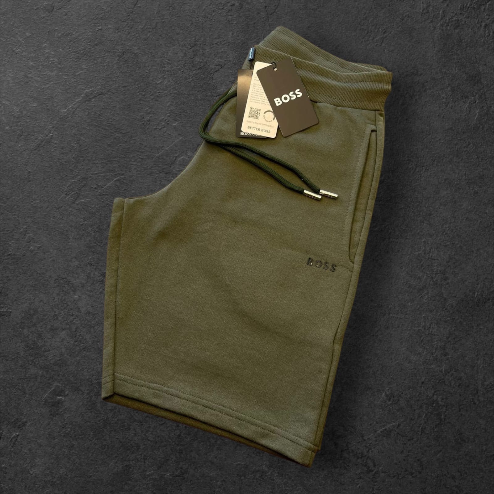 Com modelagem Regular Fit, possui cós ajustável por cordão com ponteiras metálicas, bolsos laterais funcionais e acabamento minimalista. O bordado discreto da marca “BOSS” na parte frontal reforça a elegância sutil e autêntica da label alemã.