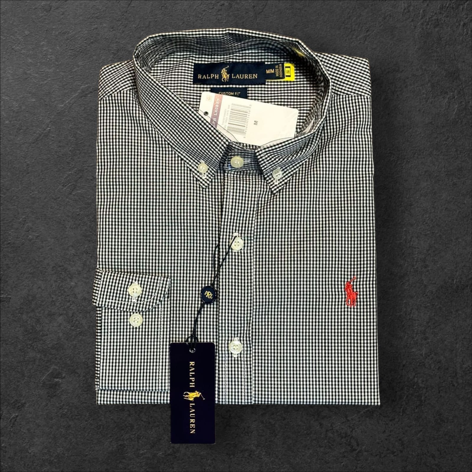Camisa Xadrez Ralph Lauren Masculina Custom Fit Preto e Branco